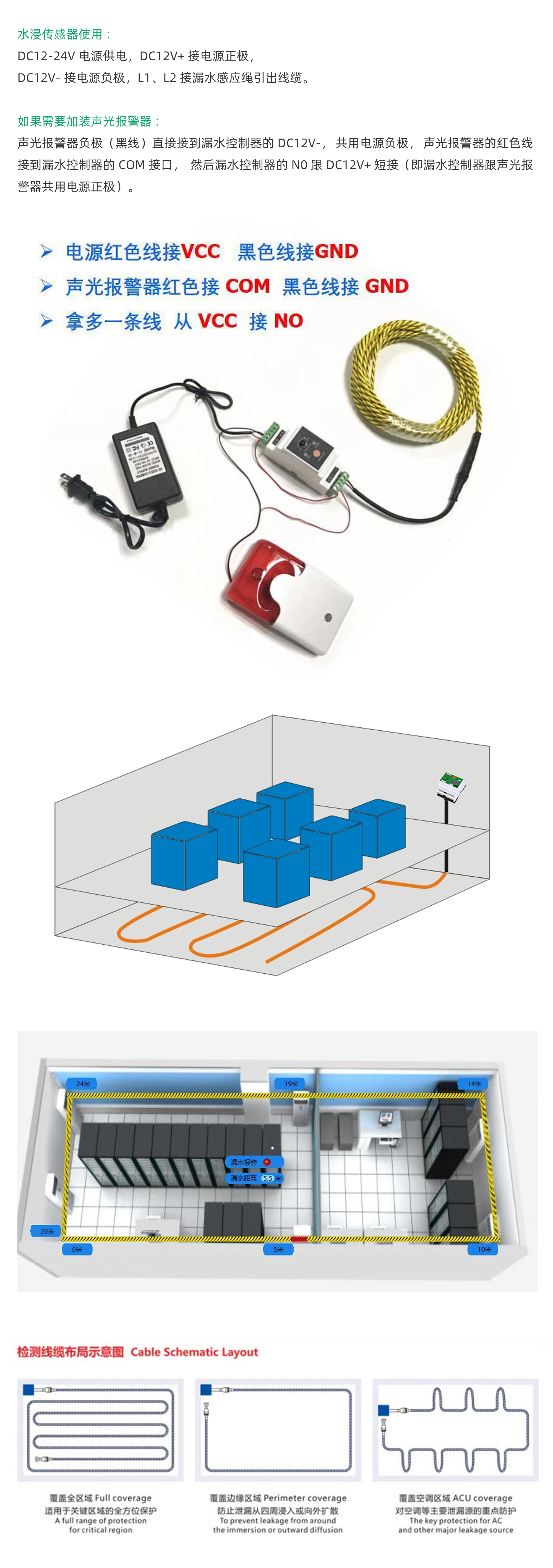 水浸傳感器漏水控制器感應(yīng)繩接線與布線方式