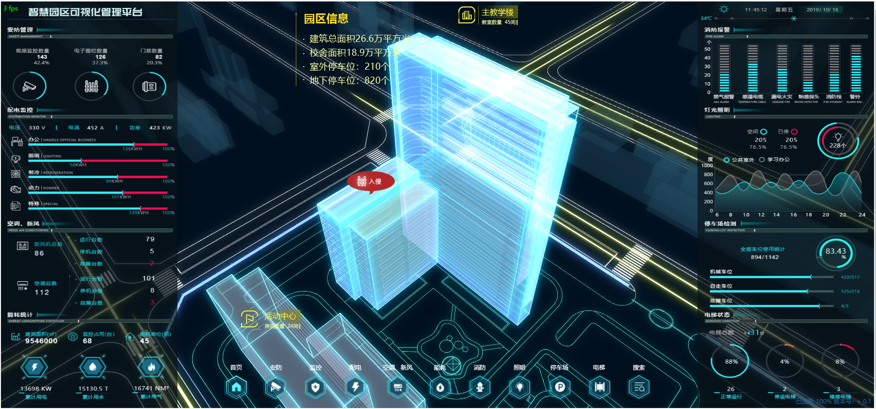 監(jiān)控內(nèi)容:園區(qū)內(nèi)門禁、視頻、安防、消防、停車、人員管理、能耗、UPS、電池組、機(jī)房空調(diào)、發(fā)電機(jī)、紅外防盜探測、門禁系統(tǒng)、漏水監(jiān)測系統(tǒng)、發(fā)電機(jī)漏油監(jiān)測系統(tǒng)、環(huán)境溫度和濕度監(jiān)測、自動或遠(yuǎn)程控制燈光;