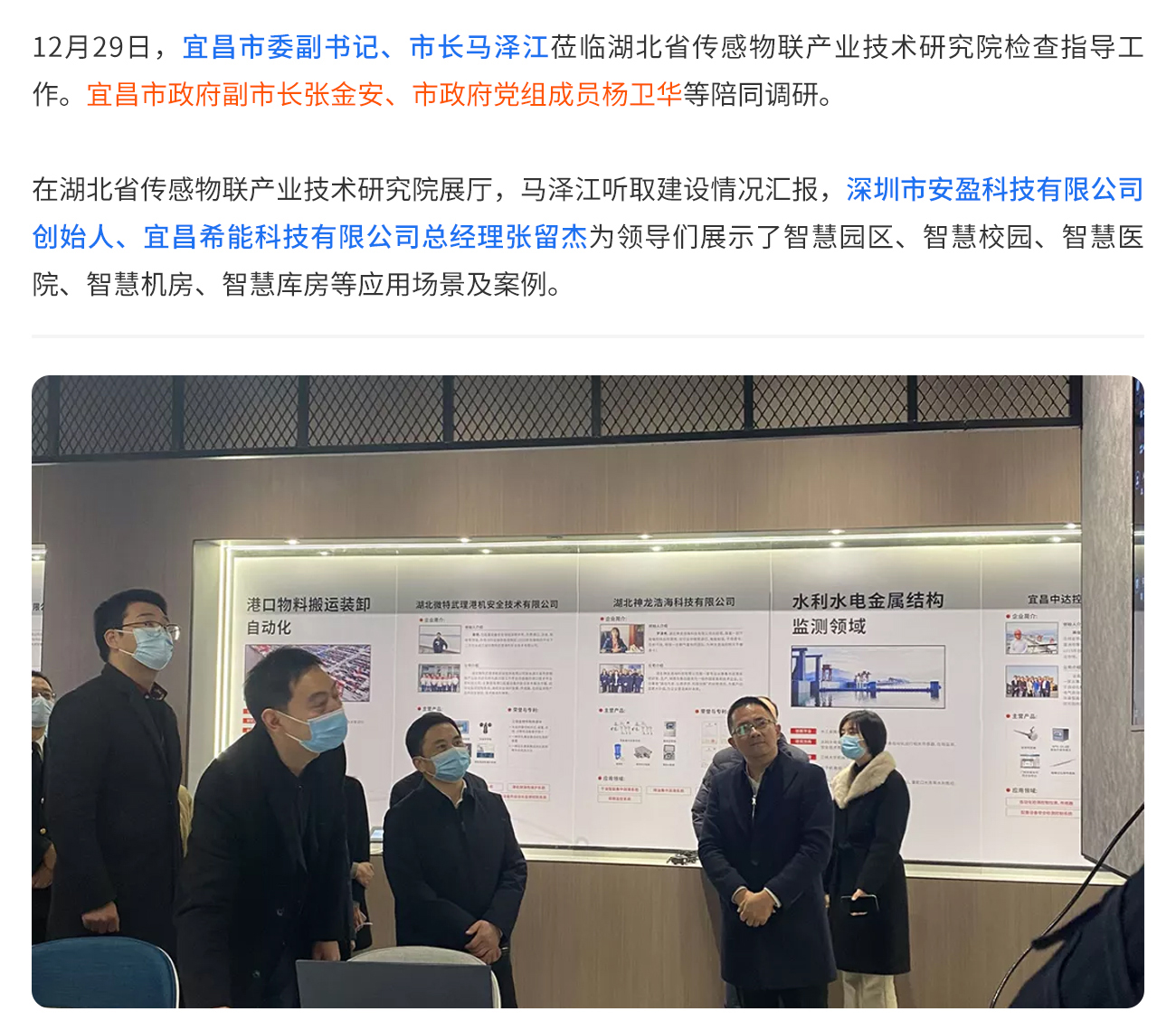 宜昌市委副書(shū)記、市長(zhǎng)馬澤江蒞臨傳感物聯(lián)產(chǎn)業(yè)技術(shù)研究院檢查指導(dǎo)工作